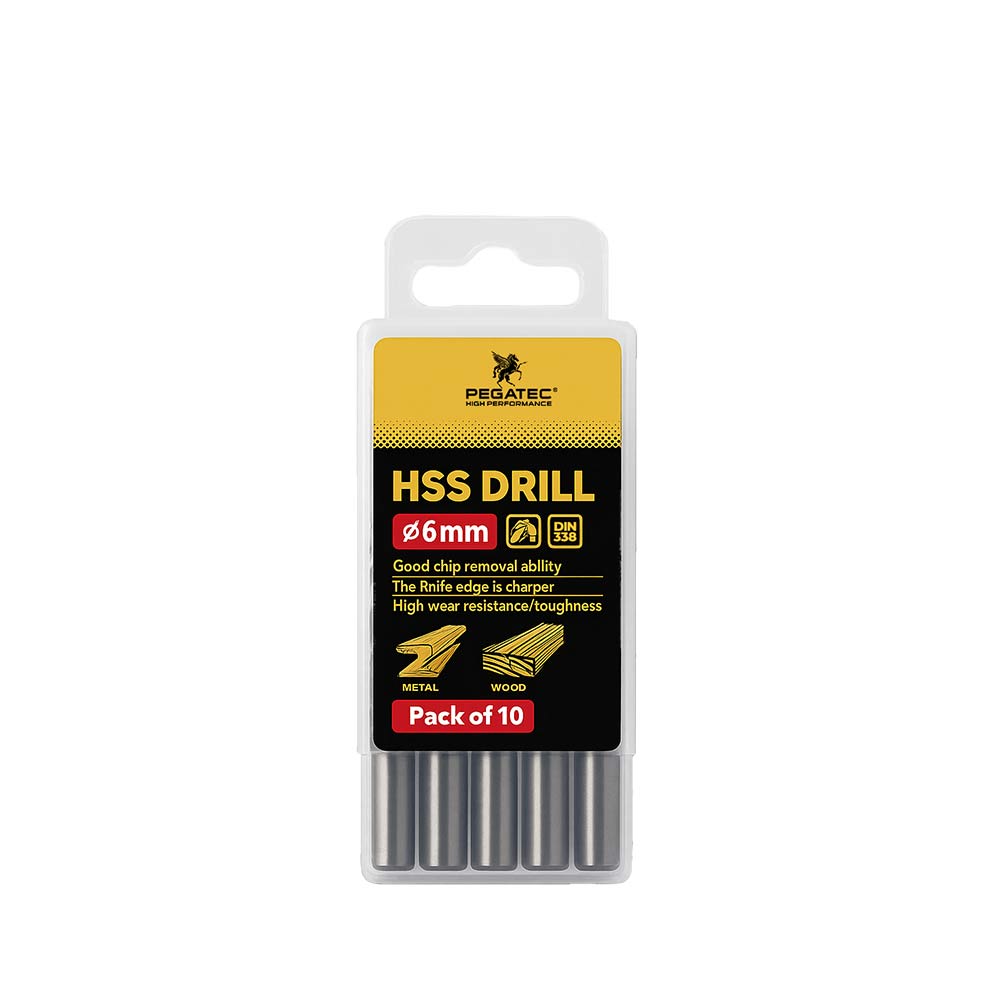 La broca para metal Pegatec de 6.0 mm está diseñada para brindar perforaciones precisas, limpias y de alta velocidad. Su revestimiento amarillo y negro reduce el desgaste, mejora la disipación del calor y prolonga la vida útil del filo.