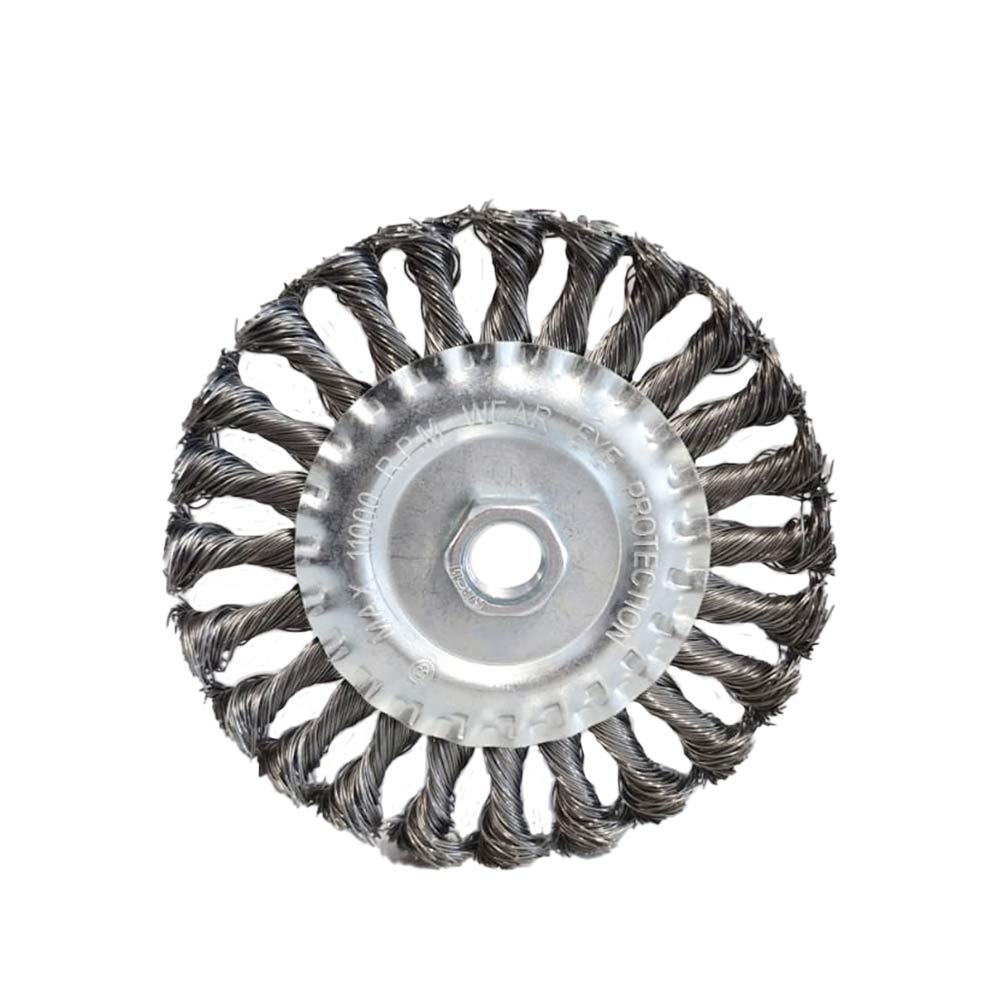 Fabricada con alambre de acero trenzado de alta resistencia, elimina eficientemente óxido, pintura y residuos de soldadura sin dañar el material base.