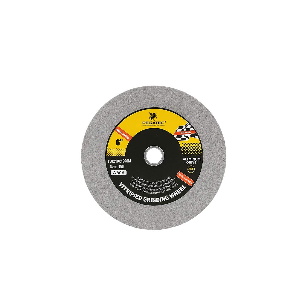 Piedra esmeril #60 de óxido de aluminio 6”, ideal para afilar y desbastar metales.